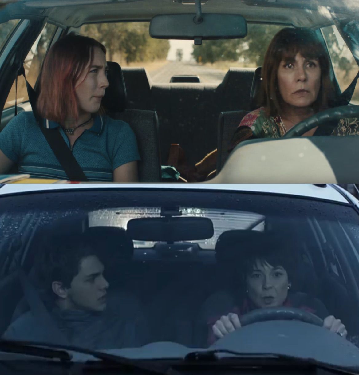 การทะเลาะกันในรถไม่เคยเป็นเรื่องเล็ก: บน - Lady Bird (2017), ล่าง - J'ai tué ma mère (I Killed My Mother, 2009)