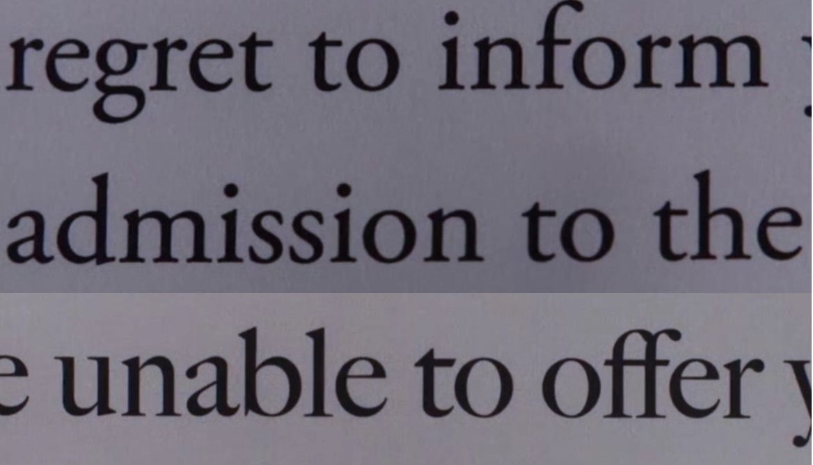 (ป. ล. อยากจะตบเข่าฉาดตอนที่เกอร์วิคซูมเน้นคำ 'regret [to inform]' และ 'unable [to offer you a place]' ถามว่าคำไหนแทงใจที่สุดช่วงสมัครมหาลัยต้องเป็นสองคำนี้แหละค่ะ ตอกย้ำเข้าไปให้สุด!)