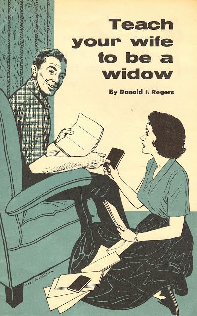 Teach Your Wife to Be a Widow โดย Donald I. Rogersอ่านหนแรกแล้วชะงัก พี่...ใจเย็นๆ นะ คือพี่ตั้งใจทำอะไร อย่าพยายาม suicide attempt นะ คนเรามีปัญหาอะไรบอกกันได้ พูดกันเถอะ
