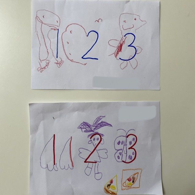 อีกหนึ่งอย่างที่เราได้ทำร่วมกับเพื่อนคือการสอนตัวเลขเด็กเล็ก คือเลข 1-9 และนำมาสร้างเป็นสิ่งต่าง ๆ ตามจินตนาการ เราจะเรียนสัปดาห์ละ 3 ตัวเท่านั้น เด็ก ๆ ชอบมากเวลาตัวเลขกลายเป็นสิ่งที่เขาคาดไม่ถึง และตื่นเต้นอยากทำทุกครั้งที่เราเข้าไปสอน แต่ก็มีเด็กบางคนที่เขาจะสนใจเฉพาะตัวเลขที่เขาชอบเท่านั้น(แต่จำได้หมดนะ) เราเลยต้องรับมือกับเด็กไม่เหมือนกัน เด็กที่สามารถทำเองได้ ก็จะปล่อยให้ทำเอง คนไหนที่ต้องเข้าไปช่วยเป็นพิเศษก็จะให้ออกแบบและคอยดูเขาเสมอ