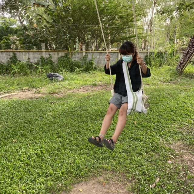 ช่วงเวลาที่เราอยู่ที่โรงเรียนใหม่ เราค่อนข้างทำอะไรหลากหลายมากขึ้น เพราะมีครูเยอะสำหรับการดูแลเด็ก ๆ แล้วบางครั้งเราเลยได้ไปช่วยทำอาหารในครัวตอนที่ว่าง เราอยากทำนะ สนุกดีตอนเด็ดผัก บางครั้งก็ไปปลูกต้นไม้ที่เหลือจากเด็ก ๆ ทำอย่างละนิดละหน่อย ช่วยครูคนอื่น ๆ หยิบจับนู่นนี่ แต่หน้าที่ที่ไม่เคยหายไปไหนคือการวิ่งเล่นกับเด็ก ยังต้องออกกำลังทุกวันตอนเที่ยง ถ้าวันไหนฝนตกทุกคนจะเล่นของเล่นในอาคาร อ่านหนังสือ คุยกับครู