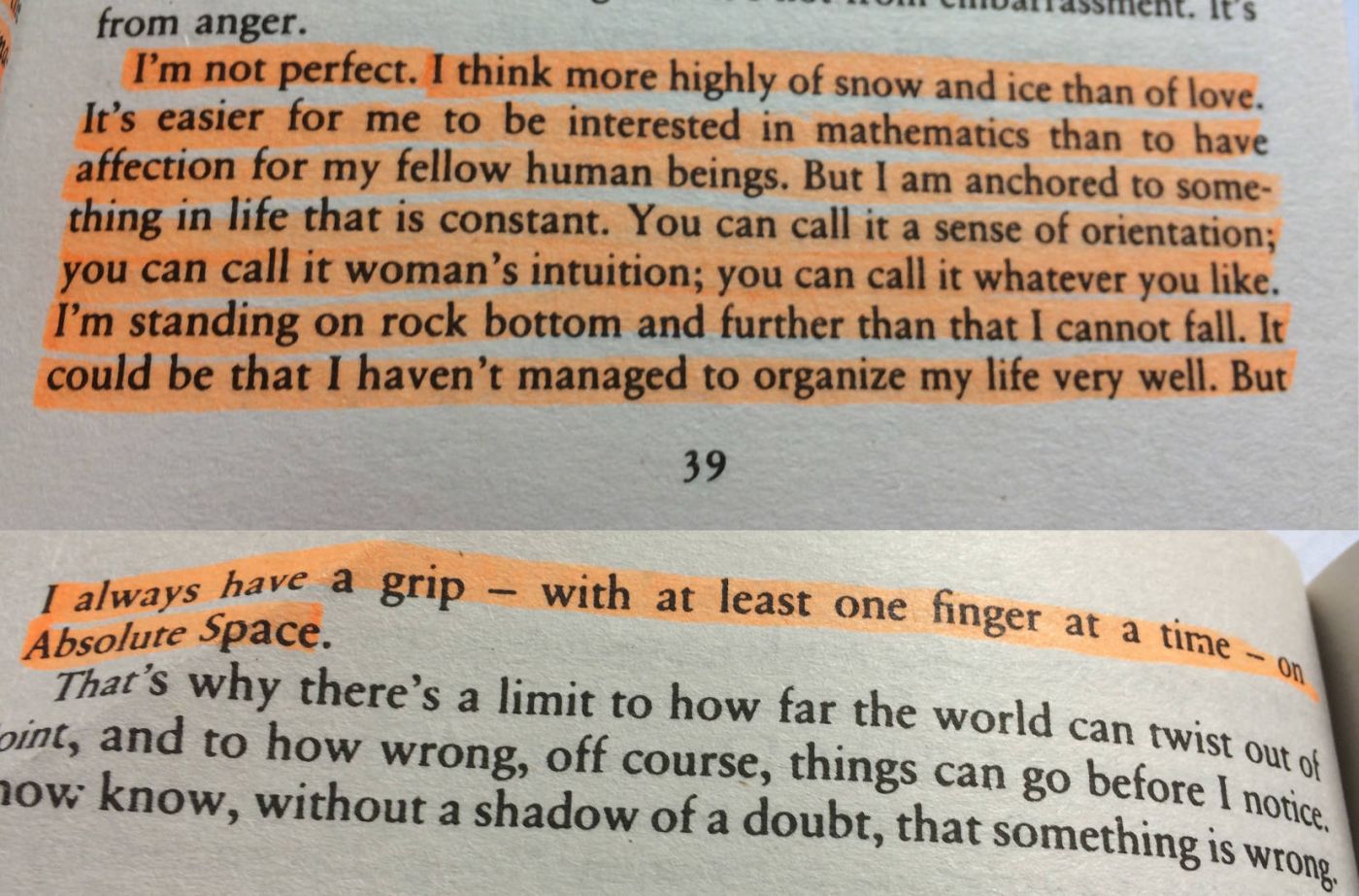 เอาเป็นว่า ถ้าใครมองหานิยายอีโมช้ำรักขี้แดกดันที่เอาวิทยาศาสตร์มาสอดแทรกและวัฒนธรรมจากดินแดนที่เราไม่คุ้นมารวมกันเรื่องนี้ตอบโจทย์มากๆ อย่างเดียวที่ไม่ควรคาดหวังคือปมเรื่องการไขคดีเราว่าคนเขียนไม่ได้ให้ความสำคัญเท่าไหร่ ซึ่งเราก็ไม่ค่อยแคร์หรอก บอกตามตรงเราอยากรู้ว่าแม่สมิลล่าจะด่าตัวประกอบที่พึ่งโผล่มายังไงมากกว่า