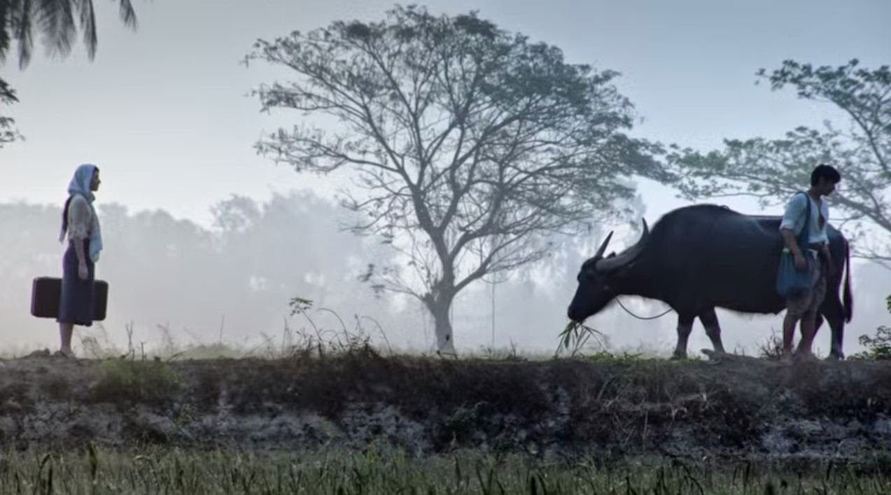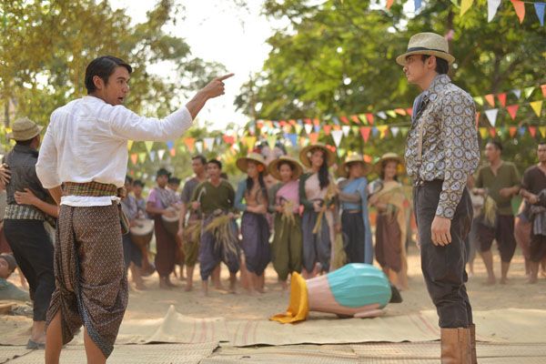 ยิ่งไปกว่านั้นในฉากนี้ผู้กำกับได้ใช้แสงสีเหลืองและแสงสีขาวทำให้ภาพดูสว่าง นอกจากนั้นยังมีการให้แสงจากด้านบนของภาพยิ่งย้ำให้เห็นถึงความบริสุทธิ์ ไร้มลทินของคนชนบทพร้อมกันนั้นการที่ผู้กำกับได้สร้างฉากนี้โดยให้อยู่ในวัดรวมไปถึงการพยายามเกี้ยวพาราสีเรียมผ่านการร้องรำวงของไอ้ขวัญอาจหมายถึงการผูกวัฒนธรรมของชาวบ้านให้เข้ากับศาสนาซึ่งเป็นเครื่องยืนยันถึงความเป็น ”ผู้เจริญ” ในด้านธรรมเนียมการเลือกคู่ครองได้อย่างมีวัฒนธรรมมากกว่าของคนชนบทซึ่งแตกต่างจากคนเมืองที่ “สมสู่” อย่างไม่เลือกหน้า ไม่ต่างจากสัตว์ในฉากงานสังสรรค์
