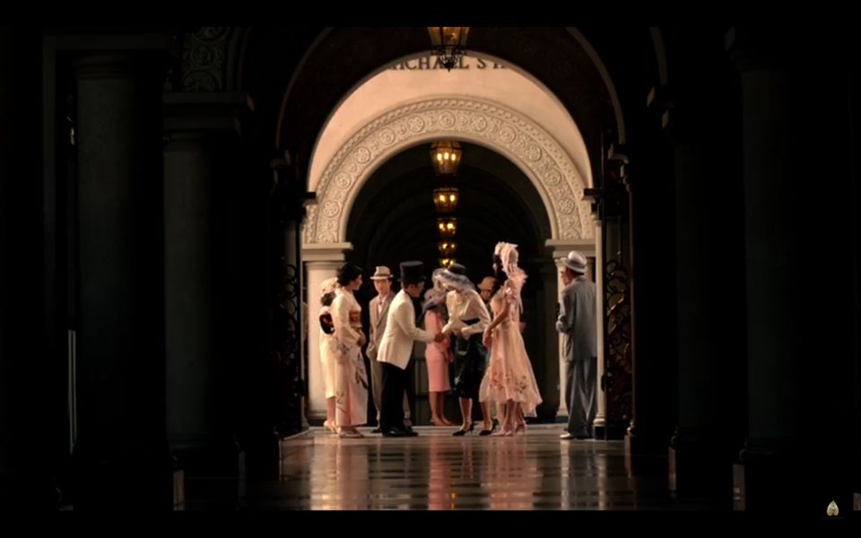 เห็นได้ชัดเจนในฉากงานเลี้ยงฉลองงานหมั้นของเรียมและสมชายความเป็นเมืองในฉากนี้เป็นความเป็นเมืองที่ถูกนำเสนอในแง่ลบแตกต่างจากภาพความเป็นเมืองในฉากอื่นกล่าวคือในฉากเมืองอื่นๆผู้กำกับนำเสนอภาพของความเจริญรุ่งเรือง ความทันสมัยความมีมารยาทและวัฒนธรรม เห็นได้จากฉากงานเต้นรำในงานประกาศเจตนารมณ์ทางการเมืองของสมชายและพรรคพวกภาพงานเต้นรำในฉากนี้แสดงให้เห็นถึงความมีมารยาทและความมีอารยะของกลุ่มคนเมืองในเวลาเดียวกัน เห็นได้จากสมชายโค้งคำนับขอเรียมเต้นรำตามธรรมเนียมตะวันตก กลุ่มผู้คนแต่งตัวตามตะวันตกและสวมหมวกที่แสดงถึงความเจริญของชนชั้นในขณะนั้นแต่ในฉากงานสังสรรค์ในคฤหาสน์ของคุณหญิงแตกต่างจากภาพของงานเต้นรำข้างต้นอย่างชัดเจนในฉากนี้ผู้กำกับพยายามนำเสนอด้านมืดของกลุ่มคนเมือง หรือกลุ่ม “ผู้ดี” โดยการสร้างให้เกิดไฟดับในเรื่องทันทีที่ไฟในงานเลี้ยงดับ ความป่าเถื่อนความต่ำทรามต่างๆของกลุ่มผู้ดีนี้ก็ผุดออกมาอย่างชัดเจนดังเช่นเรียมได้เข้าไปเห็นห้องที่เต็มไปด้วยกลุ่มชายหญิง ที่กำลังมั่วเซ็กซ์ซึ่งขัดกับธรรมเนียมของผู้ดีที่ถูกนำเสนอมาตั้งแต่ต้นเรื่องและภาพของฉากนี้ผู้กำกับได้ใช้แสงเป็นแสงสีแดงและดำ ซึ่งหมายถึงความผิดบาปและกิเลสตัณหาของกลุ่มผู้ดีการกระทำเหล่านี้ถูกนำเสนอในรูปแบบที่ไม่ต่างจากสัตว์คือมีการสมสู่ร่วมกันอย่างไม่เลือกคู่ และไม่มีพิธีสมสู่อย่างถูกต้องดังนั้นฉากงานเลี้ยงสังสรรค์ในยามที่ไฟดับจึงหมายถึงความดำมืดที่แท้จริงของคนเมืองที่ผุดออกมา หลังจากแสงสว่างได้ดับลงแล้ว