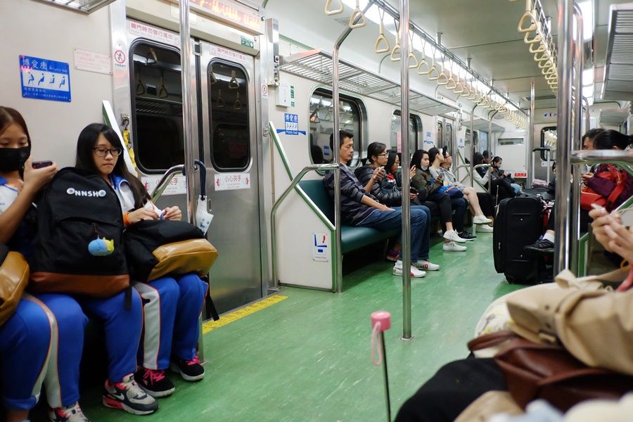 ขากลับก็นั่งบัสสายเดิมมาลงสถานี Ruifang รถมาจอดหน้าสถานีเลย ดูง่ายกว่าขาไปเยอะ รถไฟเข้าไทเปเนี่ยมีคนเยอะพอสมควรเลย เห็นนักท่องเที่ยวลากกระเป๋ากันเยอะ คงมาพักที่นี่กันด้วย แต่โชคดียังมีที่นั่งเหลือให้เรา