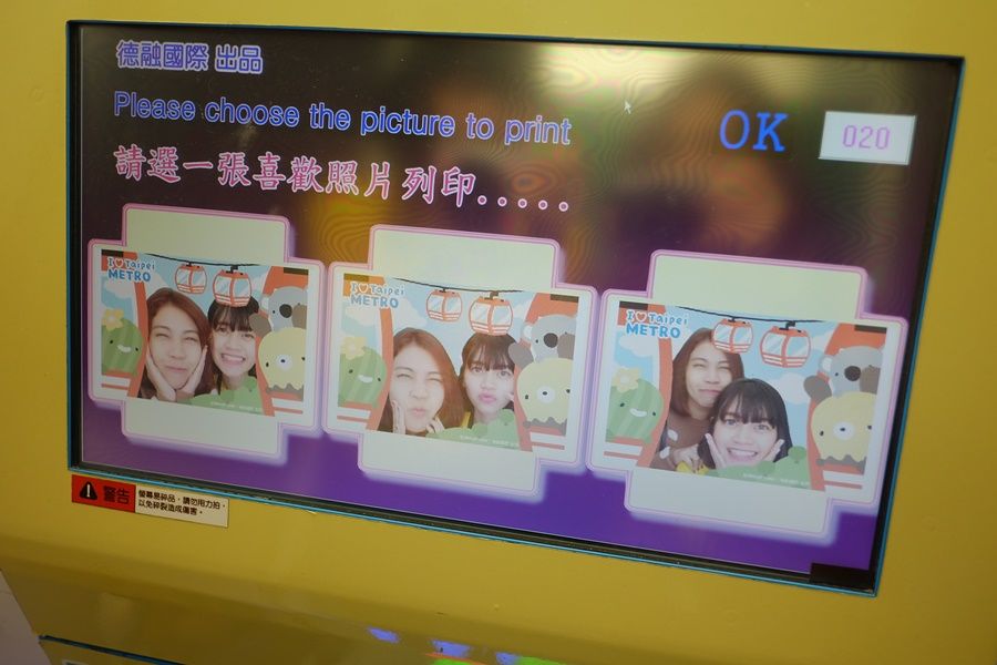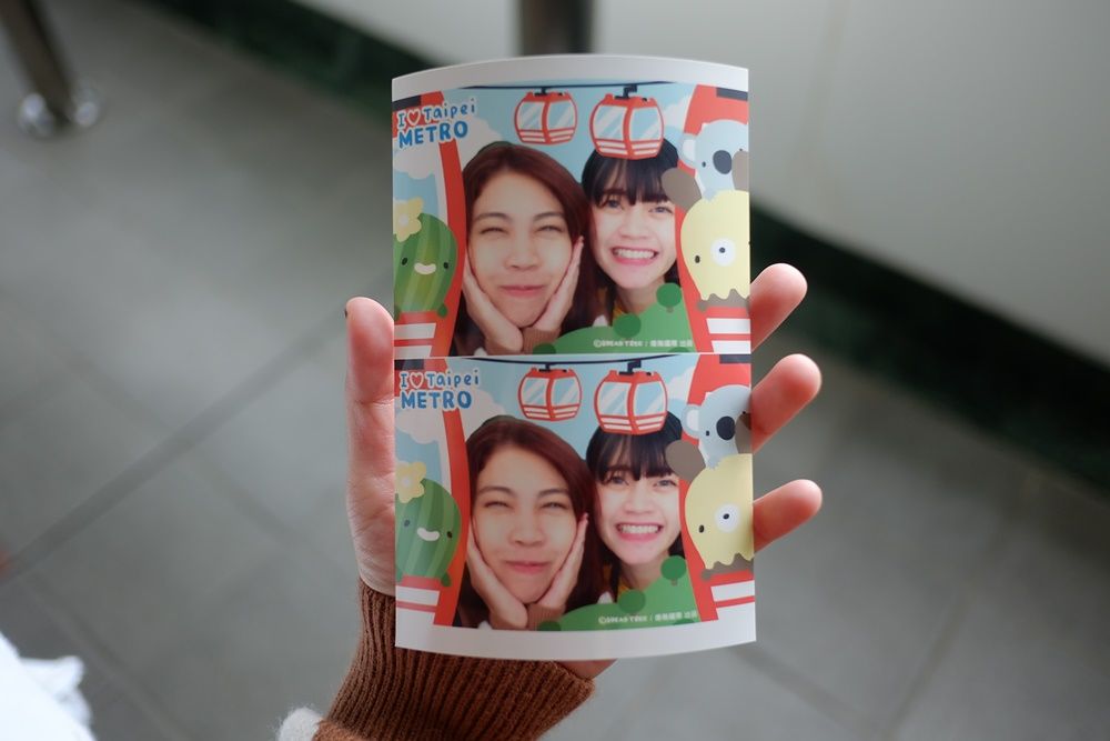 พอเดินออกจากสถานี เราก็หันไปเห็น Photo Booth ตู้ถ่ายรูปที่มุมิคล้าย ๆ พุริคุระ 55555 และเนื่องจากเรากับอันด้อยความสามารถในการเซลฟี่ทั้งคู่แต่อยากจะมีรูปด้วยกันเลยลากกันเข้าไปในตู้ รูปใบละ 100 NTD ถ้าเป็นเมืองไทยก็คงไม่แลหรอก แต่ในฐานะนักท่องเที่ยว อะไรกูก็เอาไว้ก่อน ตู้นี้ถ่ายได้ 3 ช็อต เลือกได้ว่าจะเอาเลย์เอาท์แบบไหน เราเลยเอาแบบ 2 รูปจะได้เอามาตัดแบ่งกัน
