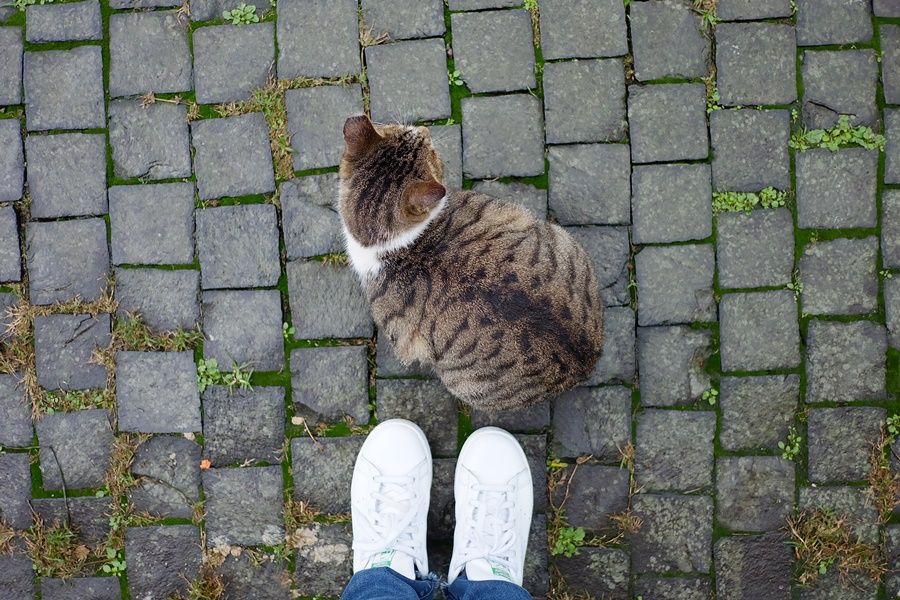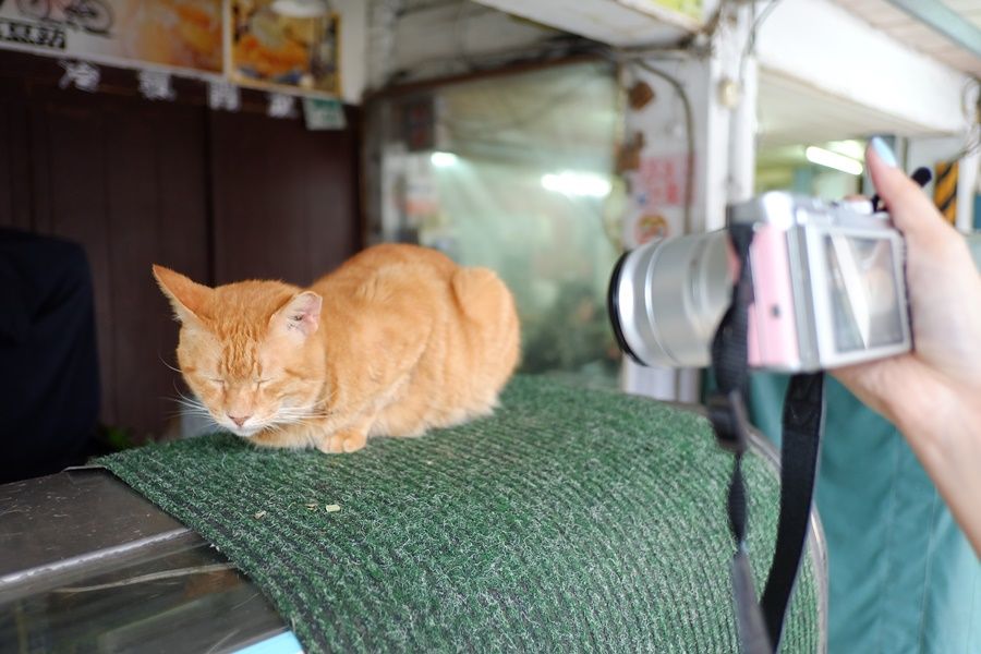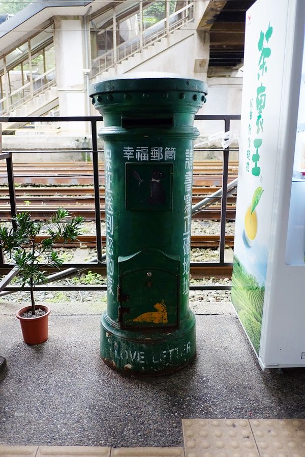 เราเขียนเสร็จก่อนอันเลยเดินไปสำรวจสถานี มีแมวอยู่ทุกที่จริง ๆ ความจริงแล้วถ้ามองจากนอกร้านเข้าไป ซ้ายมือจะมีโต๊ะให้เขียน มีกาวให้แปะแสตมป์ เต่เราเขียนกันหลายใบเลยไปหาม้านั่งใช้แทนโต๊ะแล้วก็นั่งพื้นเอา 5555