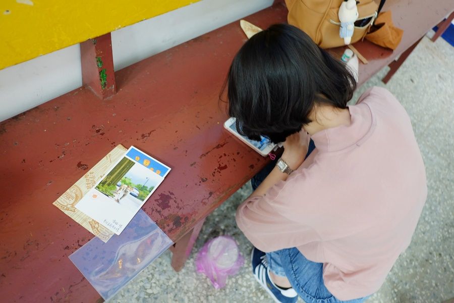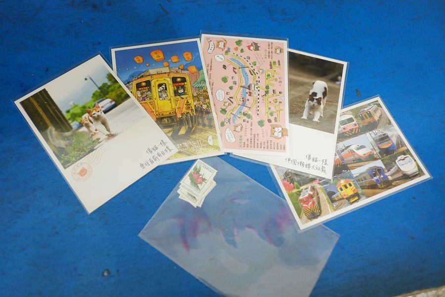 เสร็จแล้วก็เดินมาดูตรงโปสการ์ด ใบละ 20 บาท เออ... ไม่แพง เราเลยหยิบมา 5 ใบ กะส่งให้ตัวเองใบนึง ปัญหาต่อมาคือแสตมป์ ต้องใช้เท่าไหร่หว่า แล้วจะสื่อสารยังไงดี 5555 เลยเดินไปหาคนขาย ถามถึงแสตมป์ เขาพูดเป็นภาษาจีนกลับมา เดาว่าน่าจะส่งไปไหน เรากำลังจะบอกไทยแลนด์แต่เพื่อนเรานึกภาษาจีนขึ้นมาได้เลยบอกไปว่า ไท่กั๋ว ป้าแกก็พยักหน้าแล้วชี้ตรงตารางที่แปะอยู่บนเคาน์เตอร์ ต้องใช้แสตมป์ดวงละ 10 NTD ว่าแต่.. ป้าคะ อิตารางนั่นมันก็ภาษาจีน อ่านไม่ออกค่ะ