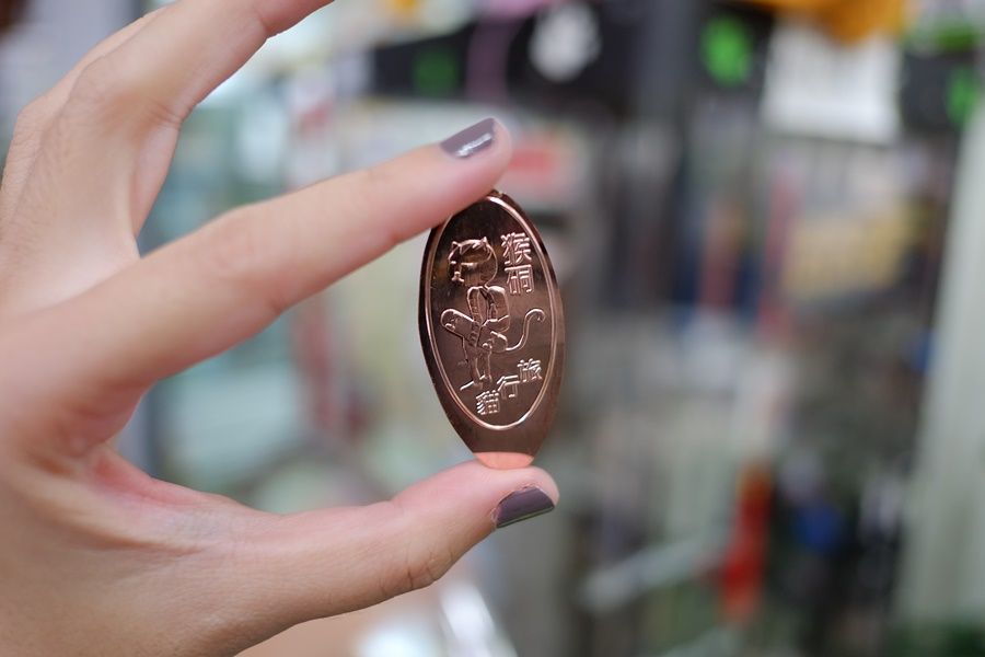 พอฝนเริ่มลงเม็ดหนักขึ้นเราเลยตัดสินใจเข้าไปในสถานี กะว่าจะส่งโปสการ์ดที่นี่เลย หน้าร้านมีตู้ปั๊มเหรียญที่ระลึก เราก็ยืนงง ๆ กับมันอยู่พักนึง พอเข้าใจว่าทำยังไงก็เริ่มเลย
