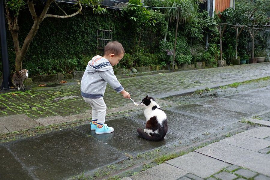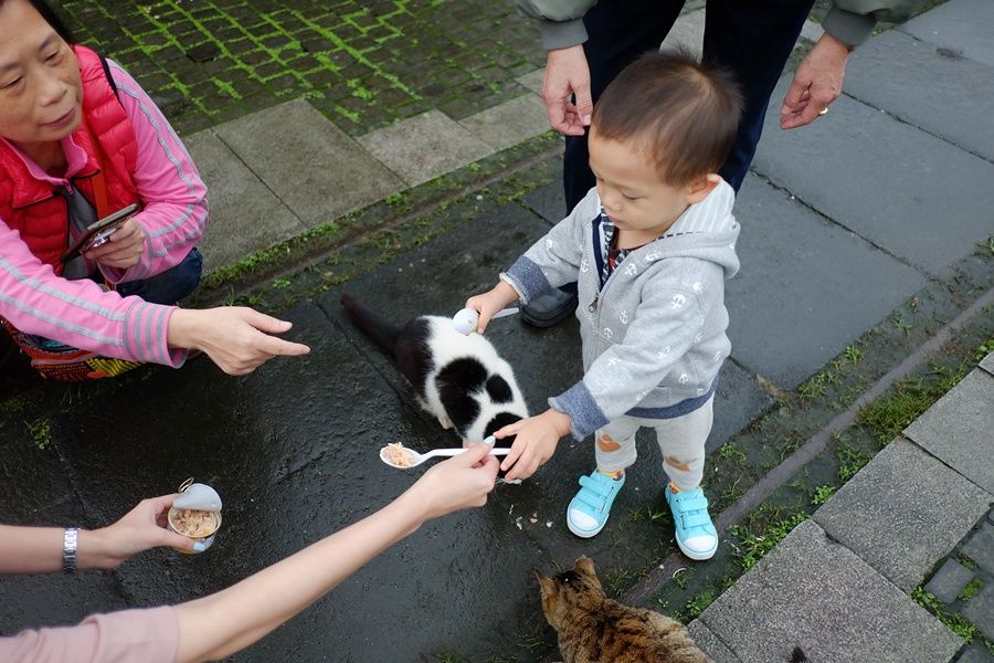น้องคนนี้ คุณยายจูงน้องมาดูแมว เราเลยส่งช้อนที่มีอาหารแมวให้ น้องสนุกใหญ่เลย ยายบอกให้น้องพูด เซี่ย ๆ แล้วก็บอกให้น้อง อาริกาโตะ ที่นี่นักท่องเที่ยวญี่ปุ่นคงเยอะจริง ยายเลยคิดว่าชาวต่างชาติคือญี่ปุ่นหมดแหง 555555
