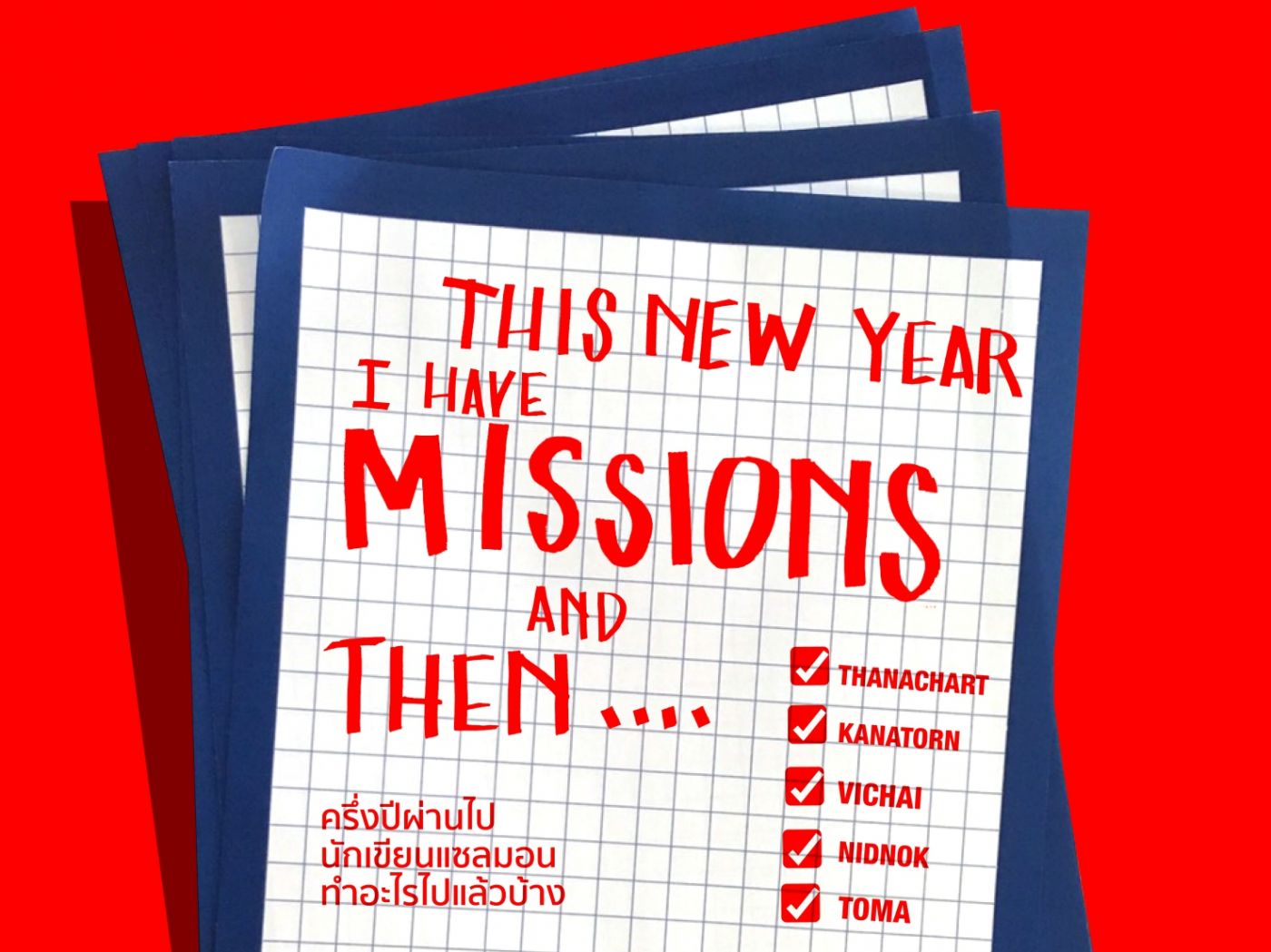 — วิชัย: “New Year’s Resolution ปีนี้ของเราคือการทำ New Year’s Resolution ของปีที่แล้วให้ได้ เช่น ออกกำลังกายกับลดน้ำหนัก อีกเรื่องที่ตั้งใจจะทำคือดูหนังให้ได้วันละเรื่อง ซึ่งส่วนใหญ่จะลงเอยด้วยการปล่อยให้หนังมาดูเรามากกว่า (หัวเราะ) ส่วนเรื่องสุดท้ายคือดูคลิปที่ปกติไม่คิดจะดู เช่น คลิปลับมีด ทำผม นวดโมจิ เพราะคลิปพวกนี้มันเอาไปใช้ในงานด้านครีเอทีฟได้ เราจะแบ่งไปเลยว่าสัปดาห์ไหนดูเรื่องอะไร สมมติดูเรื่องมีด สัปดาห์นั้นก็จะดูแต่คลิปเกี่ยวกับมีด พอสัปดาห์ต่อไปก็ดูเรื่องอื่นต่อ ตั้งแต่ต้นปีก็มีเรื่องนี้แหละที่ทำสำเร็จ เพราะเราสนุกไปกับมัน ใครที่สนใจงานด้านครีเอทีฟแนะนำให้ไปลองดูกัน”