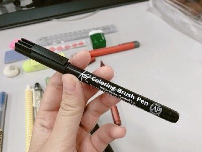 6.ปากกา ของซากุระ รุ่นKoi coloring Brush Pen คล้ายๆพู่กันของpentel แต่ต่างตรงที่สามารถระบายน้ำได้!!! เป็นพู่กันสีน้ำไปในตัว….หัวพอลองกดตามแรงมือ มีความหนา 2ระดับค่ะ ที่ซื้อสีดำมาจะเอาไว้สเกตรูปค่ะ เดี๋ยวอาจจะมีสีอื่นตามมา :)
