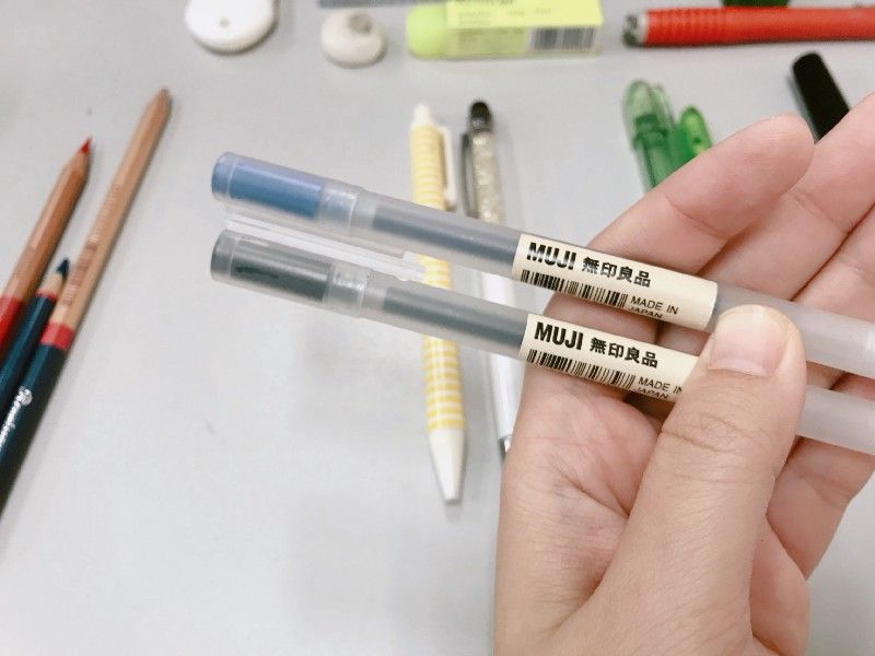 2.หมึกดำกับน้ำเงิน จาก MUJI ขนาดหัว 0.5 mm. พกไว้เผื่อต้องเซนต์เอกสารแล้วก็เผื่อจะสเกตรูปที่อยากสเกนค่ะ ปากกาแบบนี้มี ขนาดหัว 3ขนาด 0.35,0.5,0.7 ค่ะ เลือกตรมความชอบเลย :)
