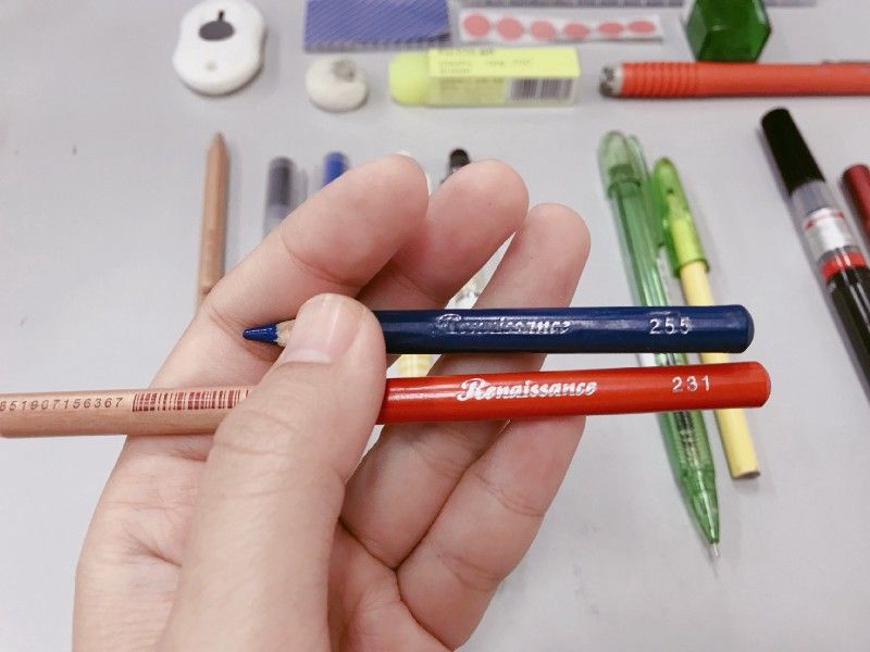 ใช้ไว้ร่างรูป ก่อนเอาไปดราฟในโปรแกรม ที่เลือก2สีนี้เพราะสีมันต่างจากดินสอ เวลาไปดราฟเส้นละเห็นชัดดีค่ะ แต่ก็มีสีเขียวอีกแท่ง แต่ไม่ได้พก จริงๆมันก็มีไว้ระบาย คุณภาพ แบบ Artist Quality เลยล่ะ สีแน่น ถ้าได้ระบายก็อยากระบายเรื่อยๆ