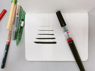 5.พู่กันจีนของpentel black #101 เพิ่งซื้อมาลองวาดเล่น แอบคอนโทรลยากนิดนึง เส้นจะมีความหนาตามน้ำหนักมือที่ลงไปค่ะ 5ระดับเลย เป็นการฝึกความเบามือและสมาธิมากเลยค่ะ หมึก เป็นแบบเติมและมีหลายสีนะคะ เย่