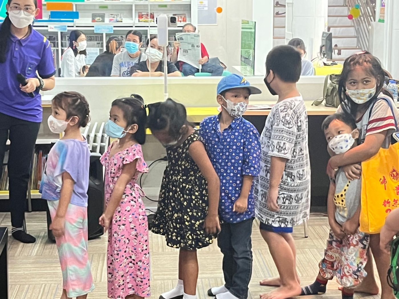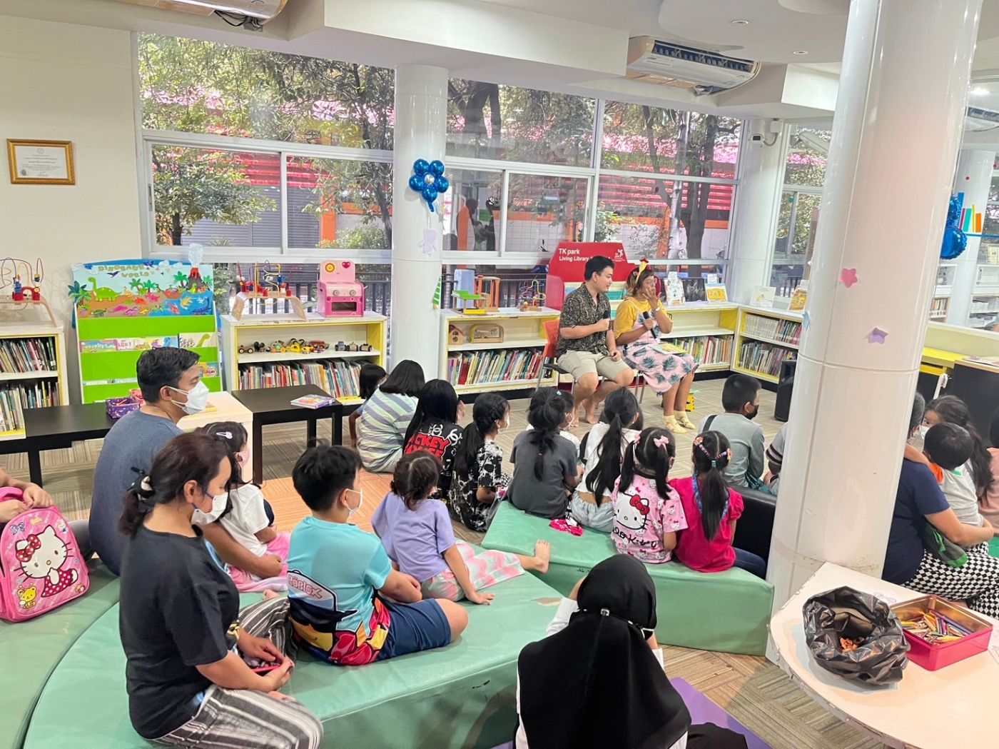 บ่ายวันเดียวกันเรากลับมาที่ห้องสมุด วันนั้นมีโครงการจัดโครงการ นิทานวิทยาศาสตร์น่ารู้ มีการเล่านิทาน ให้ความรู้เกี่ยวกับวิทยาศาสตร์ และแจกหนังสือนิทานให้กับเด็กที่มาร่วมกิจกรรมด้วย