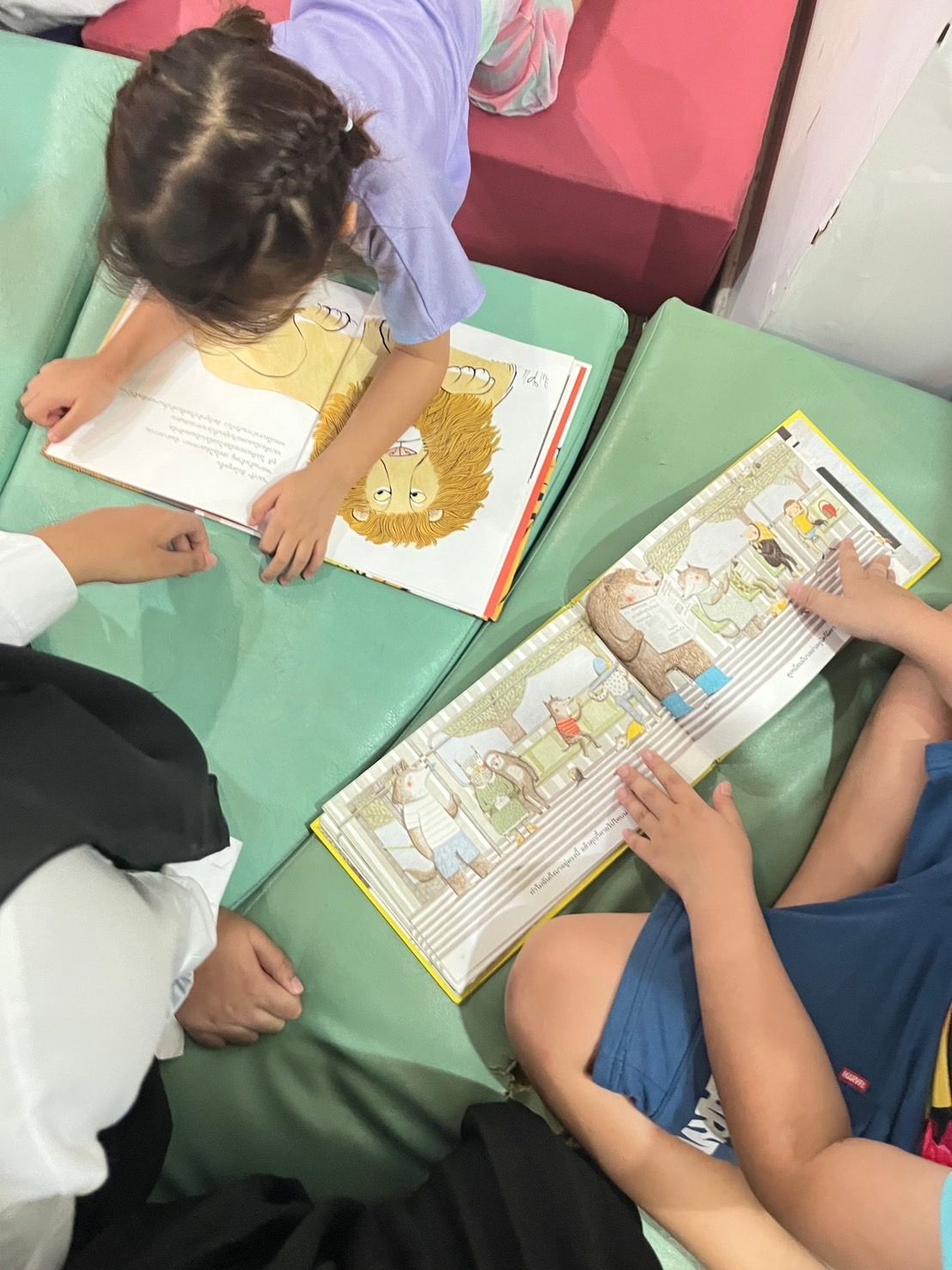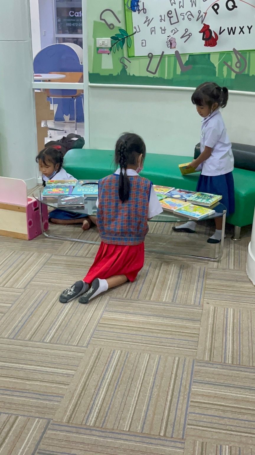 หนังสือเป็นได้มากกว่าที่คิด อ่านได้ เล่นได้ สร้างบ้าน เป็นอาหาร เป็นร้านขายของ (แต่พี่ที่เก็บหนังสือเหนื่อยฝุด ๆ T_T ) บางที่พี่ก็รับหน้าที่เป็นคนฟังนิทาน น้อง ๆ ชอบจับเรานั่งและบอกว่า "หนูจะอ่านให้พี่ฟัง"