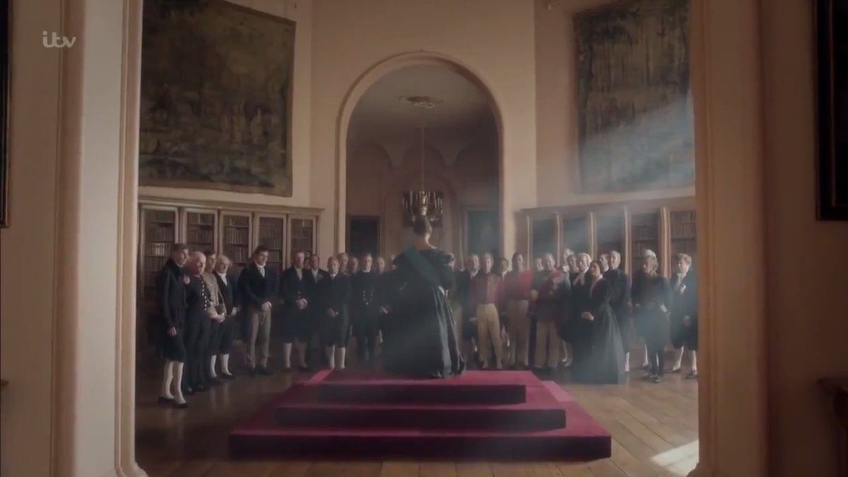 โดยจะเปิดเรื่องมาเป็นตอนที่ทหารมาแจ้งข่าวการสิ้นพระชนม์ของ King William IV จาก Alaxandrina Victoria The Duchess of Kent เจ้าหญิงตัวน้อยๆ ก็ต้องขึ้นครองราชย์ต่อทันที