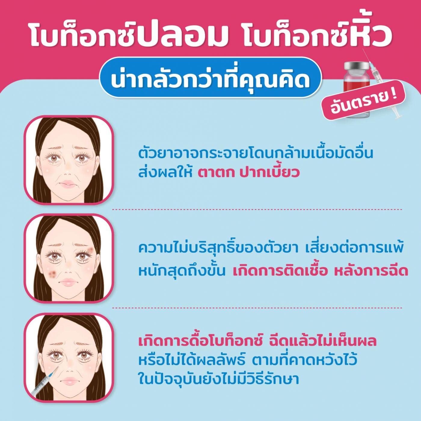 ดังนั้น เพื่อความปลอดภัย ควรเลือกฉีดโบท็อกซ์แท้ที่ผ่านการรับรอง และทำโดยแพทย์ที่มีประสบการณ์สูงเท่านั้นครับ