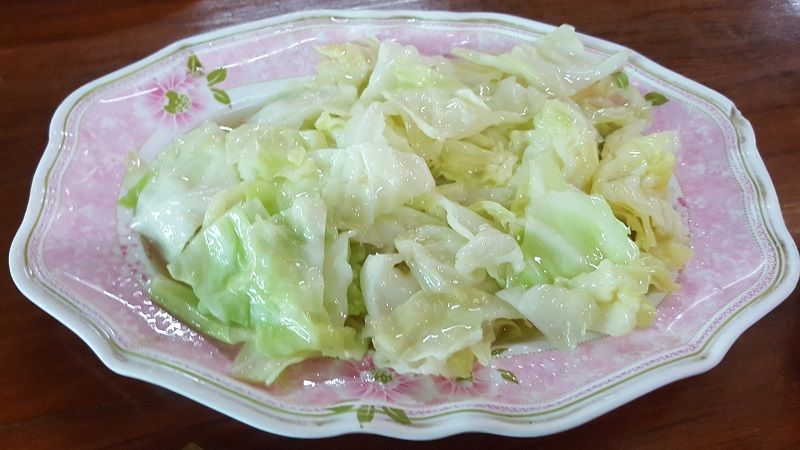 กะหล่ำปลีทอดน้ำปลา และกุ้งทอดกระเทียม”