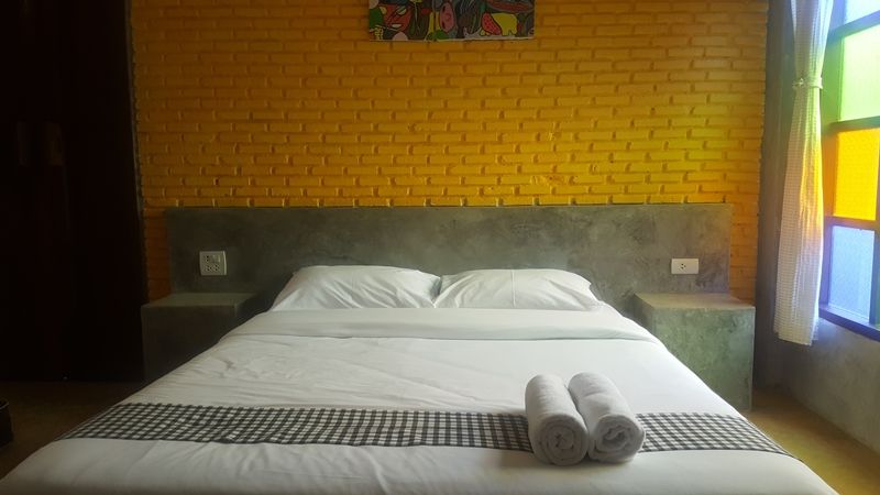 ผนังหัวนอนเป็นอิฐสีเหลืองตามชื่อบ้านค่ะ
