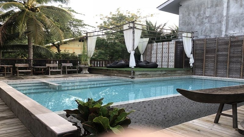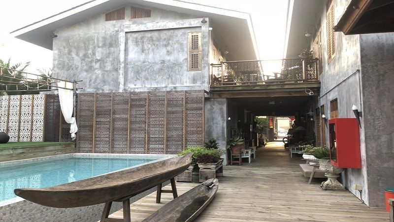 ลักษณะเป็นปูนเปือย ตกแต่งสวย มีสระว่ายน้ำด้วย