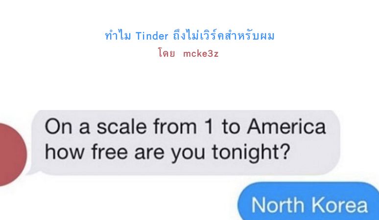 ทำไม Tinder ถึงไม่เวิร์คสำหรับผม โดย mcke3zถ้าสมัยก่อนมีลุงหนวด...ให้เราส่งจดหมายพร้อมรูปถ่ายไปลงคอลัมน์หาคู่ สมัยนี้เราก็มี Tinder แอพที่พาให้เราไปรู้จักคนใหม่ๆ เรียกเวลาแม้เวลาผ่านไป มนุษย์ก็ยังมองหาใครสักคน ที่จะมาสร้างความสัมพันธ์...หรืออาจจะพัฒนาไปเป็นความรักได้ แม้คุณ mcke3z จะตั้งชือ่โพสต์ว่า "ทำไม Tinder ถึงไม่เวิร์คสำหรับผม" แต่จริงๆ แล้วได้ให้ทริคหลายอย่างเดียวกับการใช้แอพนี้ไว้อย่างน่าสนใจ การตั้งโปรไฟล์ เขียน bio ล้วนเป็นสิ่งสำคัญ แต่ที่ยิ่งกว่านั้นคือการมอง Tinder และมองคนใน Tinder อย่างน่าสนใจ....เราตัดสินคนที่ First Impression มากไปหรือเปล่า? ความสัมพันธ์ที่เกิดขึ้นส่วนใหญ่ไม่จริงจังใช่หรือไม่ เป็นเรื่องที่คนใช้ต้องลองคิดล่ะ เพราะท้ายสุดขึ้นอยู่กับเราล้วนๆ ว่าจะปัดซ้ายทิ้งไป หรือเลือกแสดงความสนใจคนตรงหน้า