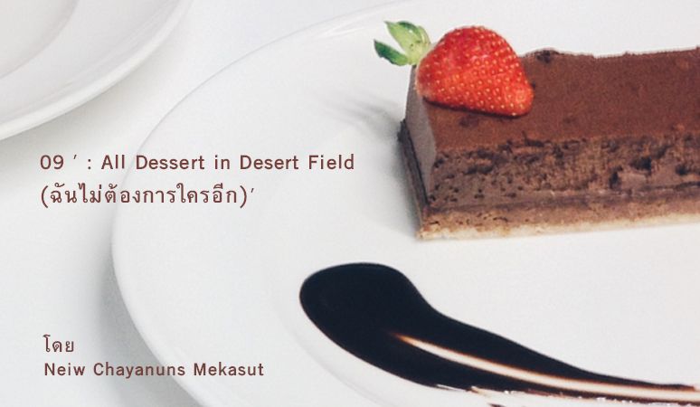 09 ' : All Dessert in Desert Field (ฉันไม่ต้องการใครอีก)' โดย Neiw Chayanuns Mekasutในครัวขนมหวานเขามีอะไร? กว่าขนมสวยๆ จะออกมาให้เราเห็น ถ่ายรูปอัพลงโซเชียลเน็ทเวิร์ค จนได้ลิ้มรสความอร่อยในที่สุดหลังจากครีมสดเริ่มละลายเกาะตัวไม่อยู่เพราะความร้อนของเมืองไทย ตามคุณ Neiw Chayanuns Mekasut เข้าครัวไปอีกครั้ง เมือ่การฝึกงานในโรงแรมพัดพาเขาเข้าไปอยู่สกิลที่ไม่ถนัดที่สุด อย่างครัวขนม! จุดที่หลายคนร้องเฮ้ย ว่าผู้ชายไม่น่าจะเหมาะกับขนมเลยนะ แต่มินิมอร์ได้ยินมาว่าพาติซิเย่ร์ระดับเทพนัน้เป็นผู้ชายเสียเยอะเลย *เปิดแสงออร่าข้างหลังให้พวกเขา* ขนมไม่เลือกคนกินฉันใด ขนมก็ไม่เลือกเพศคนทำฉันนั้น ตามไปอ่านเรื่องราวชีวิตในครัวขนมหวาน พร้อมกับรูปขนมที่ผ่านบ้างโดนเชฟใหญ่ติกลับมาบ้างกัน