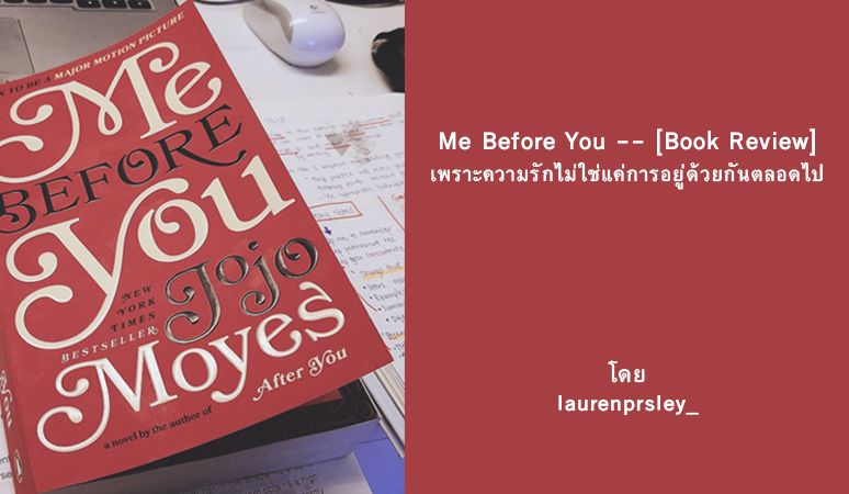 Me Before You -- [Book Review]เพราะความรักไม่ใช่แค่การอยู่ด้วยกันตลอดไป โดย laurenprsley_กลัวสปอยล์อย่าอ่านโพสต์นี้นะ (บอกไว้ก่อน เราไม่นิยมสปอยล์แบบไม่ทันตั้งตัว) แต่ถ้าคิดว่าการสปอยล์นัน้ไม่สำคัญเท่าการได้รู้จักหนังสือดีๆ สักเรื่องหนึ่ง แนะนำให้ลองไปอ่านโพสต์ของคุณ laurenprsley_ เลย Me Before You เป็นเรื่องราวของหญิงสาวที่ร่างกายสมบูรณ์ดี แต่ใช้ชีวิตอย่างยากลำบากเพื่อครอบครัว จนกระทั่งไม่รู้ด้วยซ้ำว่าชีวิตของตัวเองจริงๆ คืออะไร กับเศรษฐีหนุ่มที่ทำทุกอย่างที่อยากทำมาหมดแล้ว จนกระทั่งประสบอุบัติเหตุและขยับไม่ได้ เธอได้มาทำงานเป็นผู้ดูแลเขา ส่วนเขาคือคนที่ได้รับความช่วยเหลือ...แต่ท้ายสุดแล้วทั้งสองก็ต่างช่วยกันและกัน ประเด็นที่น่าสนใจคือการมองหาคุณค่าของชีวิต ผ่านตัวละครที่ต้องมีชีวิตแต่ไม่ได้ใช้ชีวิต กับตัวละครที่เคยได้ใช้ชีวิต และอยากจบชีวิตตัวเอง... การแสดงเจตจำนงในการจบชีวิตตัวเอง เป็นสิ่งที่หลายประเทศยอมรับแล้ว แต่ก็ยังเป็นประเด็นอยู่ดีเนอะ ลองไปอ่านเรื่องราวเกี่ยวกับหนังสือเล่มนี้ และเหตุผลว่าทำไมพระเอกถึงเลือกเช่นนั้นกัน