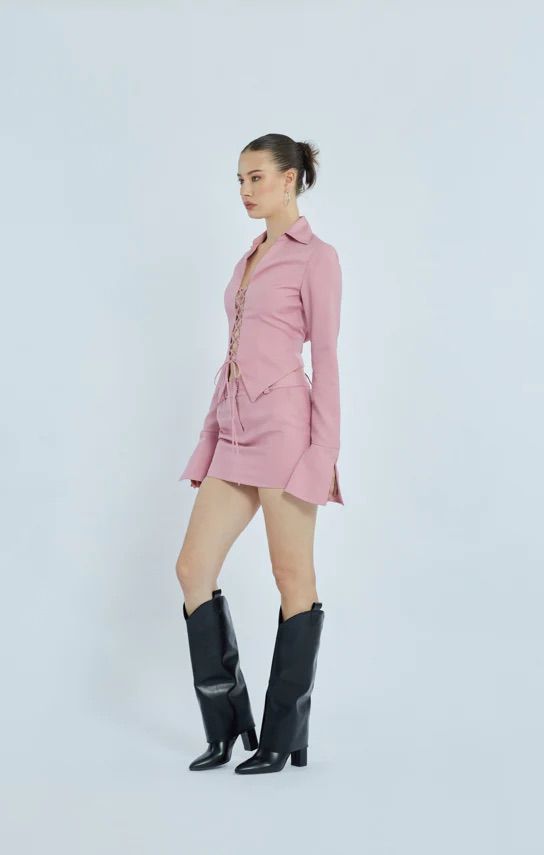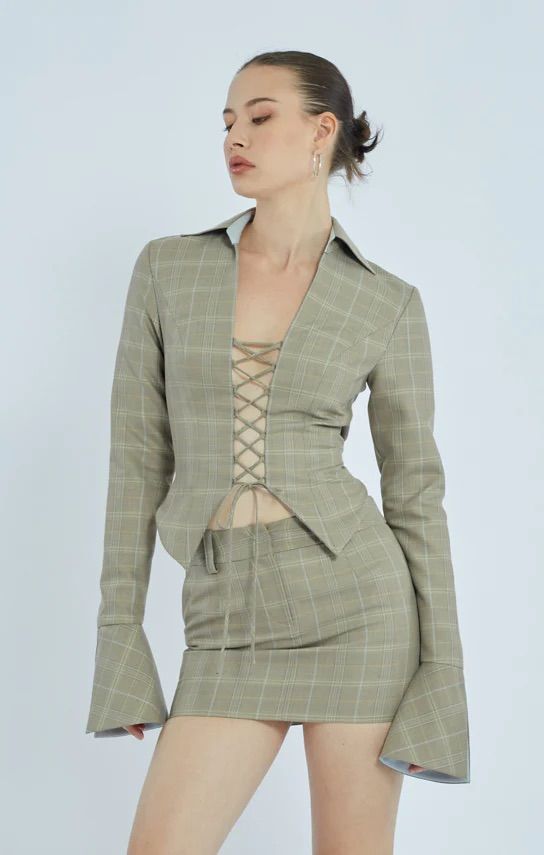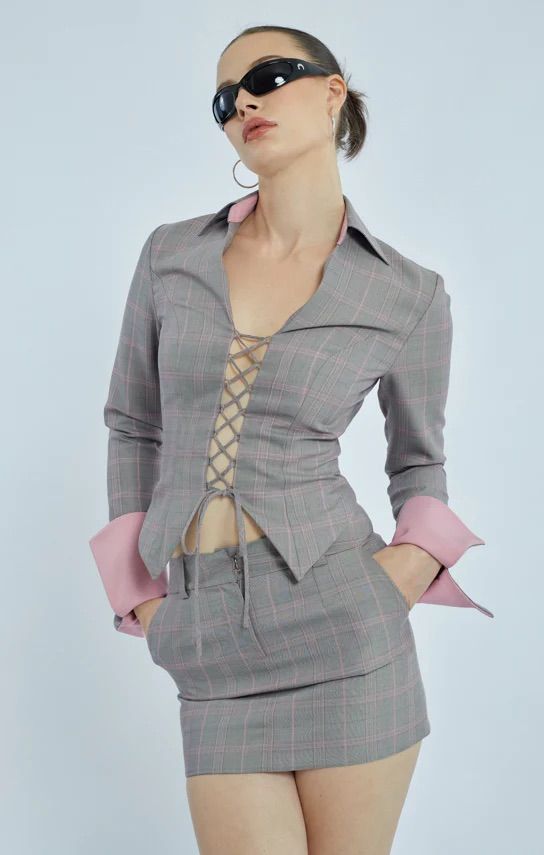 For the Lace Up Suit. You could wear it long or fold sleeves up for a more energetic look. Let's say you pair it with mini skirts for a great look!