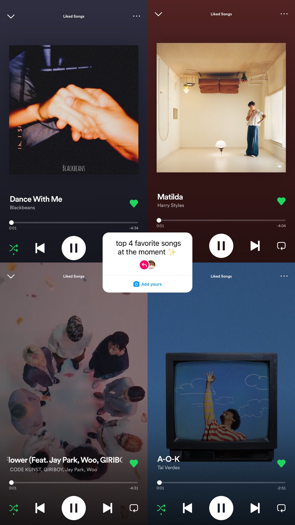 "top 4 favorite songs at the moment✨"