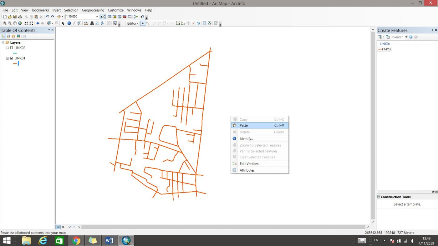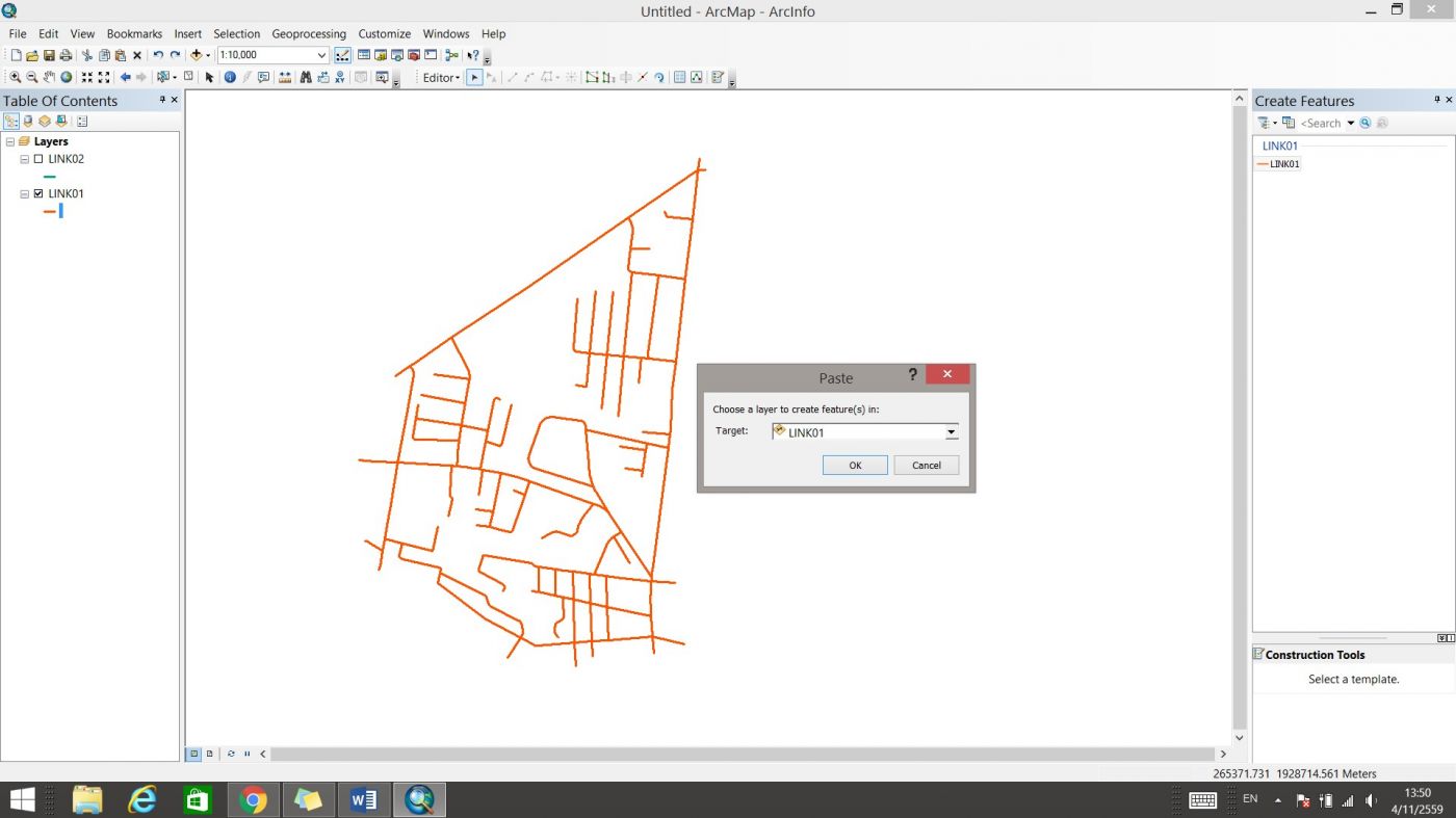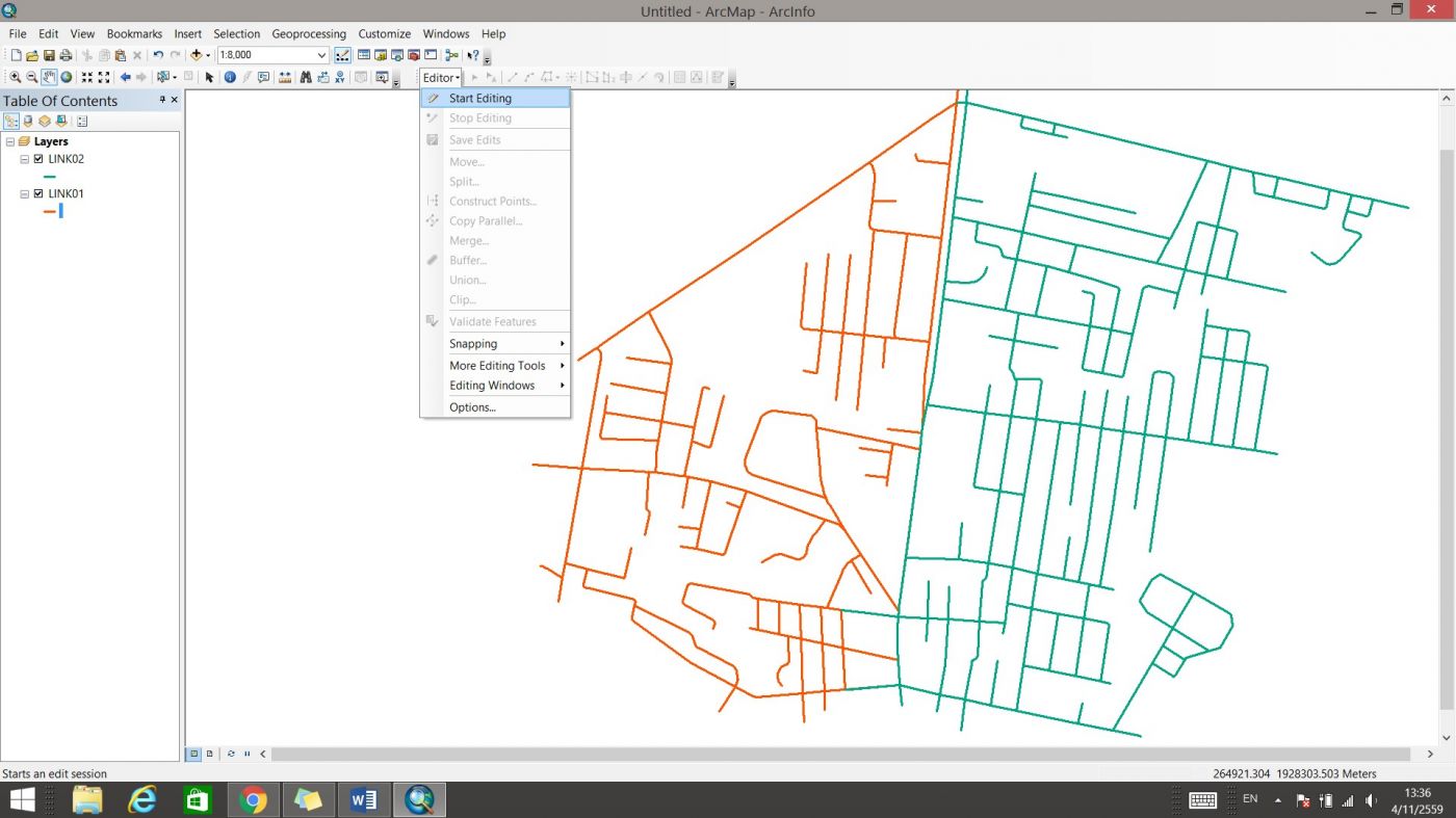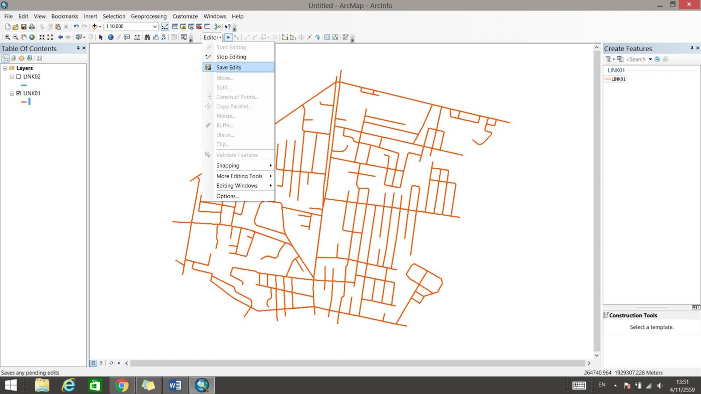 จะได้ข้อมูลของทั้งสองส่วนรวมกันแล้วในชั้นข้อมูล LINK01 จากนั้นคลิก Save Edits และ Stop Editing