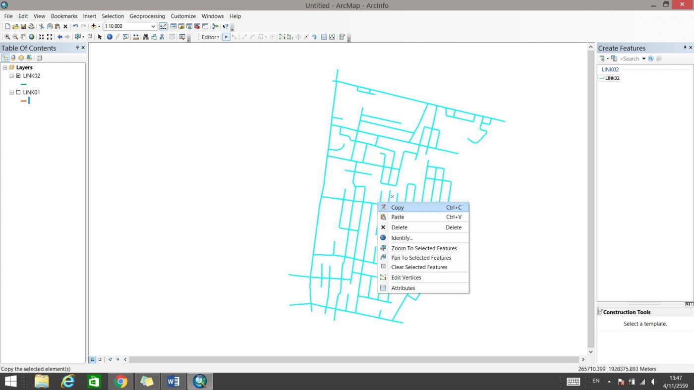 ปิดชั้นข้อมูล LINK02 และเปิดชั้นข้อมูล LINK01