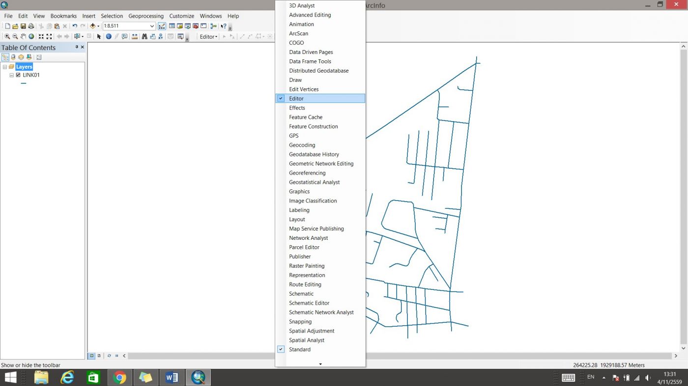 1. เปิดชั้นข้อมูลเชปไฟล์ (Shapefile) ในโปรแกรม ArcGIS