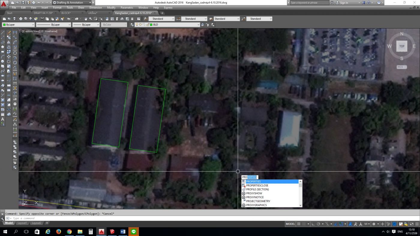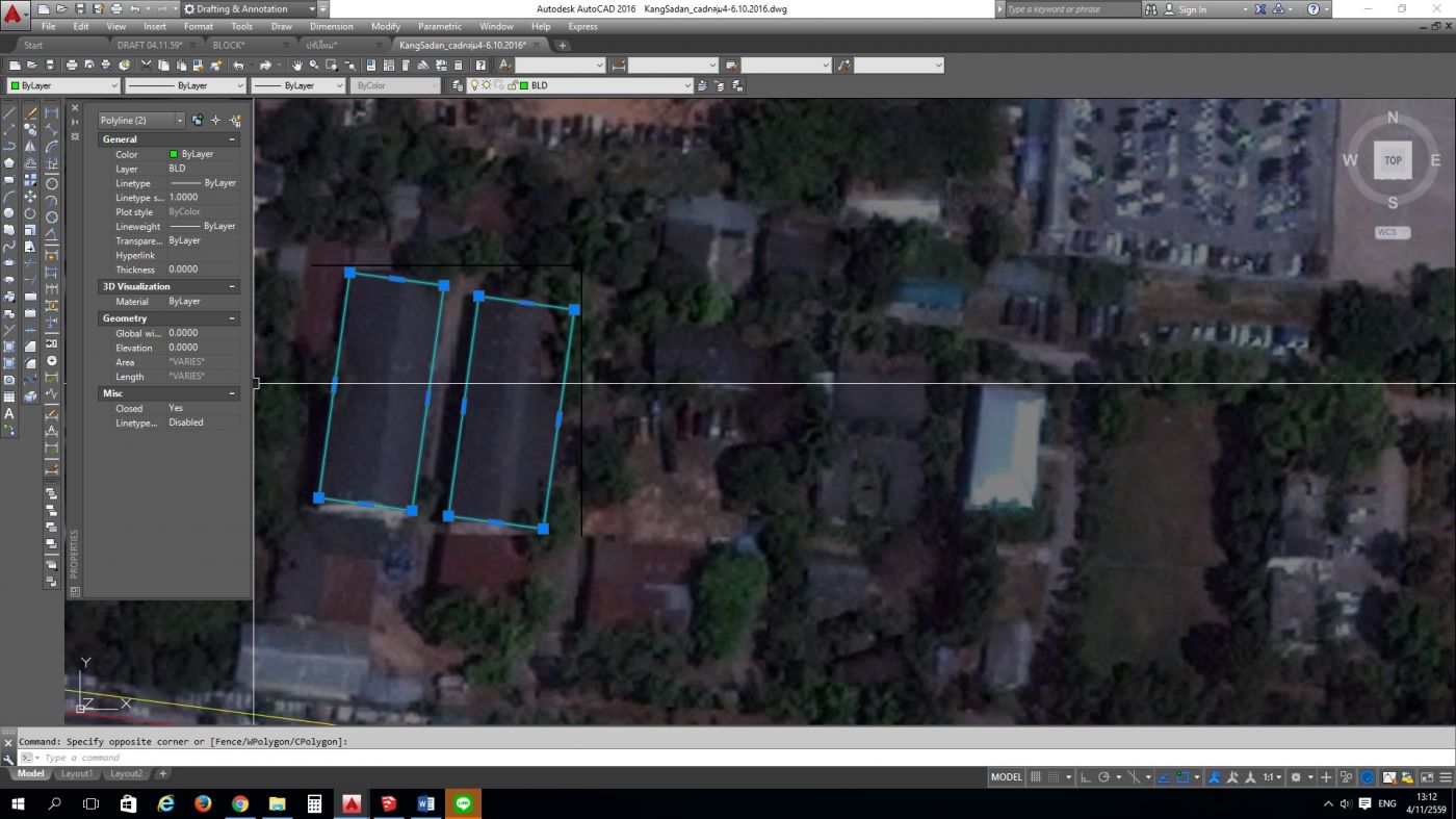 การปิดเส้น Polyline หรือ Polygon พิมพ์คำสั่ง "pro" จะปรากฏคำสั่ง Properties กด ENTER