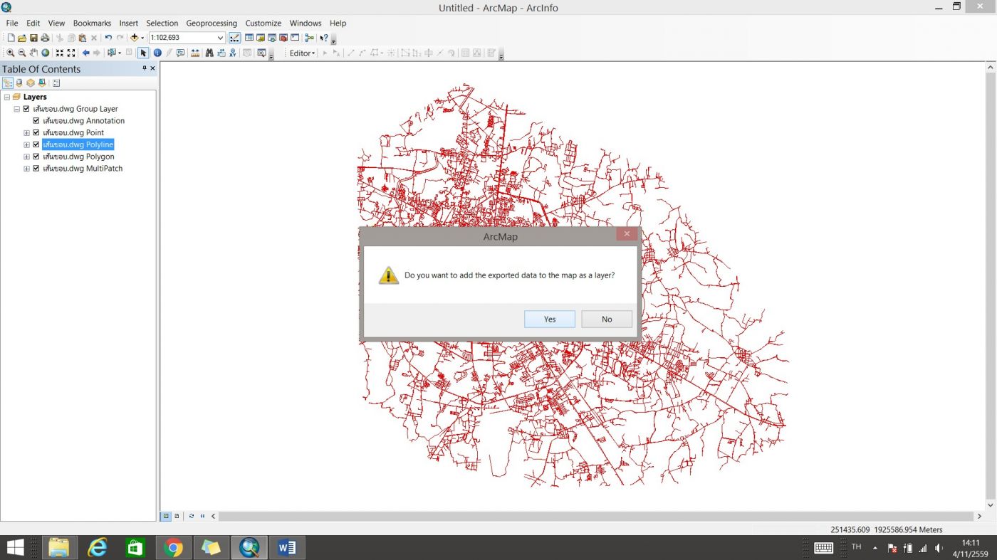 หลังจากที่โปรแกรมแปลงเสร็จจะถามว่าต้องการเพิ่มชั้นข้อมูลเข้ามาในโปรแกรมหรือไม่ -> Yes