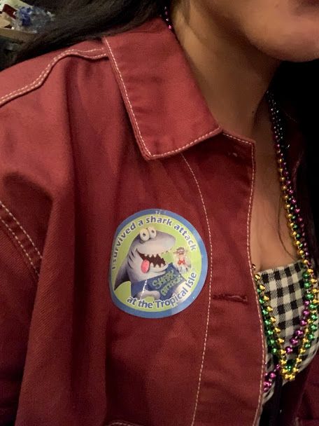 (แถมสติกเกอร์ด้วยว่าเรารอดจากโดนฉลามกัด ฮ่าๆ I survived a shark attack!)