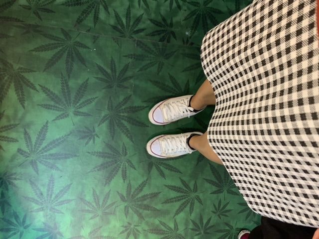 ระหว่างที่เราเดินหาตึกยอดฮิตนั้นก็สะดุดตากับร้านร้านหนึ่ง บนป้ายหน้าเขียนด้วยหนังสือสีเขียวและมีโลโก้ใบไหม้ห้าแฉกบนพื้นหลังว่า ‘Weed World’ เอ้ะ...อ่านถูกมั๊ยนะ? เราสะกิด Daniela ให้ดูว่าเราอ่านถูกมั๊ย เรามองเข้าไปในร้านก็เจอต้นไม้ชนิดหนึ่งตั้งอยู่ในร้านเลยจ้าาาา เรากับ Daniela มองหน้ากันแล้วก็พยักหน้าว่า ‘ไปมึง Let’s go!’  (หมายถึงว่าเดินเข้าร้านอ่ะ ไม่ใช่เดินผ่าน ฮ่าๆ!!)