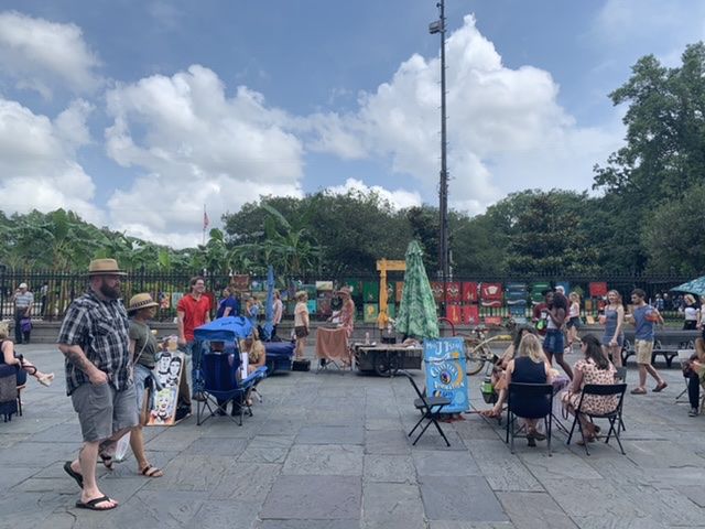 หลังจากแวะดูธรรมชาติ(?)กันเล็กน้อยแล้ว เราก็เดินเล่นกันต่อเพื่อหาตึกที่คนชอบไปถ่ายรูปกัน ช่วงบ่ายคนไม่เยอะแต่ก็ไม่น้อยมาก เราได้ยินเสียงวงดรตรีเล่นเพลง Jazz มาแต่ไกล ผู้คนยืนมุงดูวงตรีและหยุดถ่ายวีดีโอกันใหญ่ เกือบจะทุกซอกมุมตึกจะมีคนเล่นดนตรเต็มไปหมด เดินๆสักพักก็ได้ยินเสียงขบวนพาเหรด เสียงดังเฮฮา โหวกเหวกกันสนุกสนาน คนในขบวนก็จะเดินเข้ามาเต้น มาทักทาย เอาสร้อยลูกปัดหลายๆสีให้เป็นของที่ระลึก (ถ้าซื้อก็เส้นละ $2 มั้ง ฮ่าๆ)