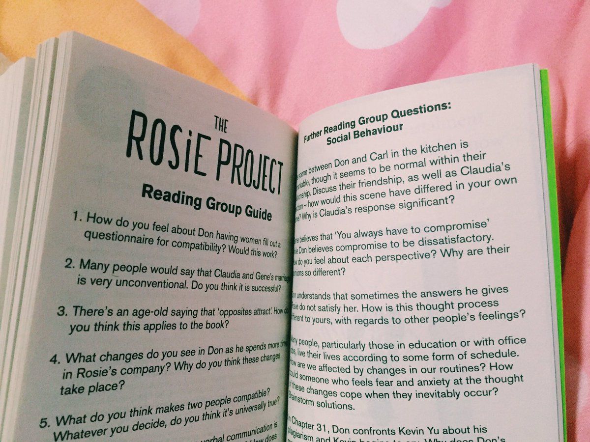เราจึงคิดว่าThe Rosie Project สอดแทรกปรัชญาและความหมายของชีวิตเอาไว้อย่างแยบยล คนอาจจะอ่านเอาสนุก แต่สำหรับเรา เรื่องนี้คือนิยายเนื้อดีอย่างแท้จริงเพราะสามารถใช้ทุกองค์ประกอบในเรื่อง (ภาษา, ปมตัวละคร, การกระทำ, ตัวประกอบฯลฯ) มาแกะเปลือกสังคมให้เราดู โอเค โลกใบนี้แย่เนอะ แต่เราต้องอยู่กับมันให้ได้ ก็เหมือนกับตรรกะเหตุผลแหละ ไม่ใช่ทุกครั้งที่มันใช้ได้ในชีวิตจริง เราต้องอย่าลืมว่ามนุษย์มีอารมณ์ความรู้สึก สิ่งเดียวที่เหตุผลทดแทนไม่ได้ คิดไปคิดมา ก็เริ่มพบความ Romanticism (ต่อต้านเหตุผล เน้นอารมณ์) ที่แฝงอยู่ในนิยาย เราจะไม่ลงลึกไปกว่านี้ ไม่งั้นคงได้ยกอิมมานูเอล คานท์ มาถกแล้ว (ฮา)
