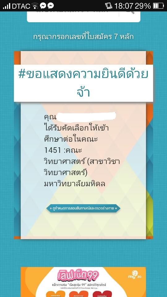ผลแอดมิชชั่นจะประกาศตอน 18.00พอดิบพอดีไม่สุกจนเกินไป