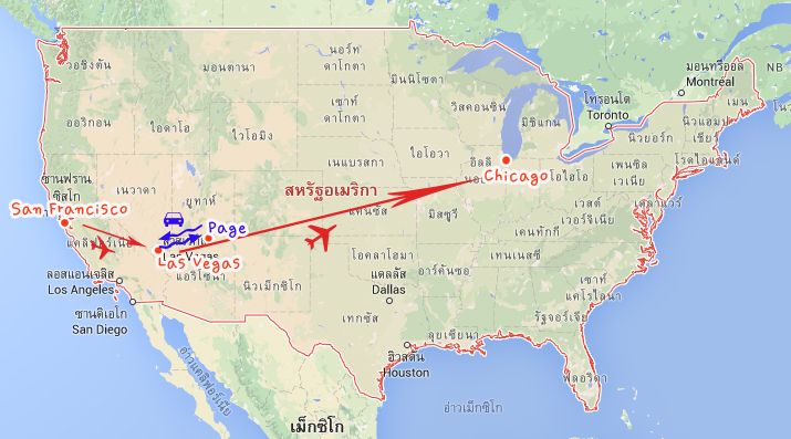 ตอนมาร์กจุดเที่ยวก็ดูแค่ว่าอยากไปทำอะไร ไปที่ไหน แล้วที่ไหนเดินทางง่าย ตั๋วเครื่องบินไม่แพง เป้าหมายของเราครั้งนี้คือสะพานโกลเด้นเกท ดูเบสบอล ชีสเค้กแฟคตอรี่ ช้อปปิ้ง เลยได้สถานที่มา2เมืองแรก นั่นคือซานฟรานและชิคาโก โดยส่วนตัวแล้วชอบชิคาโกมากกว่านิวยอร์ก เที่ยวคนเดียวได้สบายมาก เดินซื้อของก็ง่ายกว่า แต่Taxแพงมากนาจา แต่ก็ไม่แน่นะ ถ้ามีโอกาสได้ไปนิวยอร์กอีกครั้ง อาจจะชอบนิวยอร์กมากกว่าก็ได้