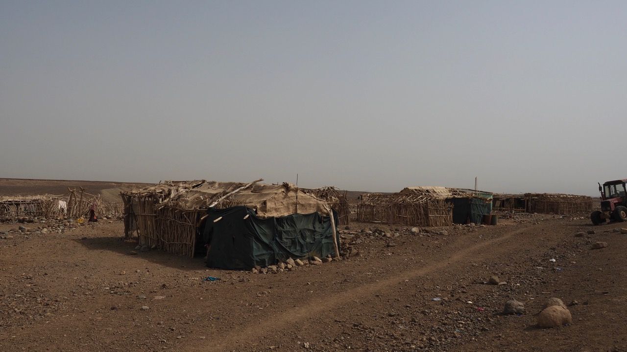 บ้านเรือนใน Hamedela มีลักษณะเป็นกระท่อมเล็กๆ ที่ทำจากกิ่งไม้ แล้วมีผ้าคลุมด้านบน