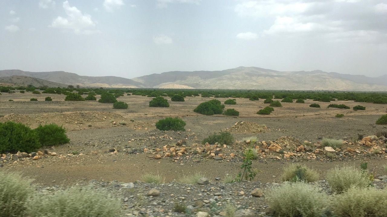 เมื่อรถขึ้นเขาก็จะมี สีเขียวมากขึ้นหน่อย และมีแพะภูเขาเล็มใบไม้