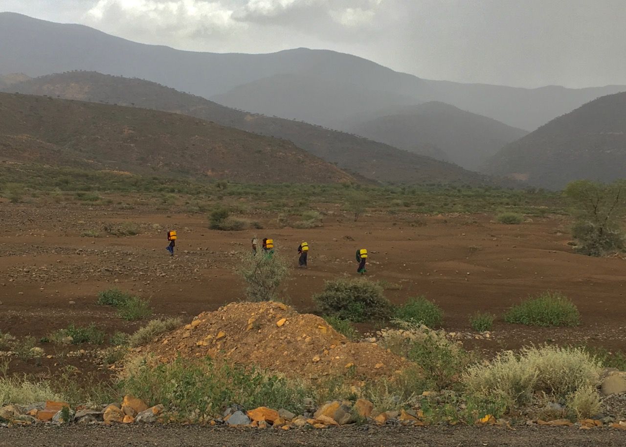 น่าแปลกใจที่กลุ่มคนทั้งหมดนั้น เห็นเพียงแต่ผู้หญิงและเด็ก ที่ต้องบรรทุกถังหนักๆเหล่านั้น เดินเป็นระยะทางไกลๆ