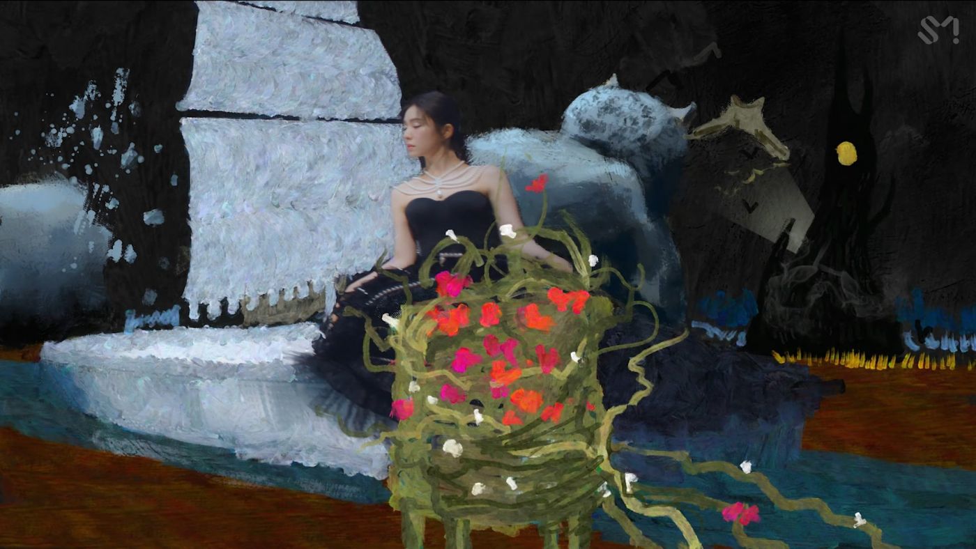 ต่อมาเราจะมาพูดถึงในส่วนของไอรีนกันบ้าง สังเกตได้ว่าไอรีนจะมีซีนที่อยู่ในสวนกับซีนที่นั่งเรือแบบนี้หลักๆ อยู่สองซีน จากเรื่องราวทั้งหมดที่ร้อยเรียงมา เราจึงมองว่าไอรีนกำลังล่องเรือกลางแม่น้ำไปยังโลกแห่งความตาย โดยมีสาเหตุมาจากความรักของจอยที่มีต่อซึลกิค่ะ