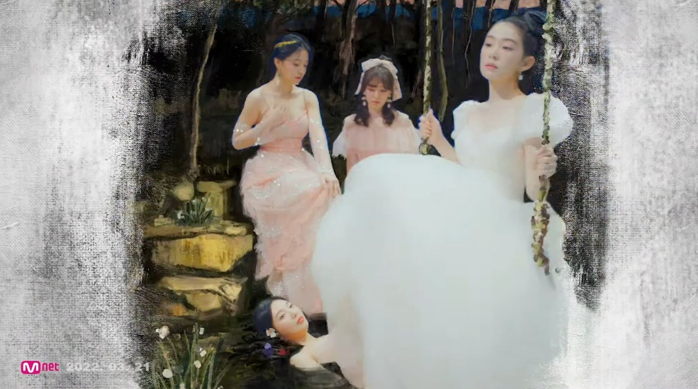 โดยถ้าหากเราโฟกัสในดีเทลของภาพนี้ด้วยความตั้งใจ เราจะเห็นความใกล้เคียงกันกับองค์ประกอบต่างๆ ที่มีในเอ็มวี และถูกนำเสนอใหม่ในแบบของ Red Velvet เองค่ะ โดยเรื่องราวของเอ็มวีนี้เป็นการพูดถึงการตั้งอยู่และดับไปของสวนอีเดน แต่จะต่างออกไปจากที่เราเคยรู้กันมาว่า มีอดัมและอีฟเป็นชายหญิงคู่แรก แต่ถูกเปลี่ยนเป็นการล่อลวงด้วยกิเลสตัญหา ระหว่างคนในสวนอีเดนด้วยกันเอง