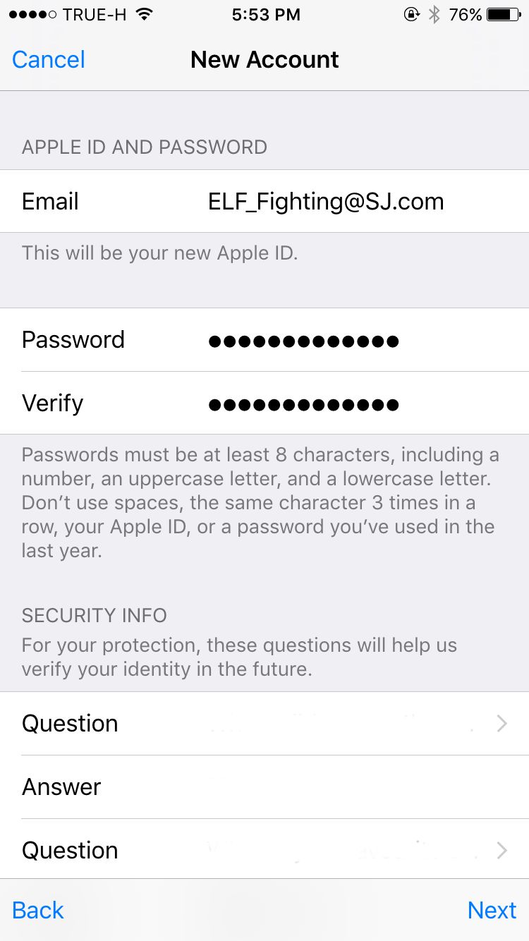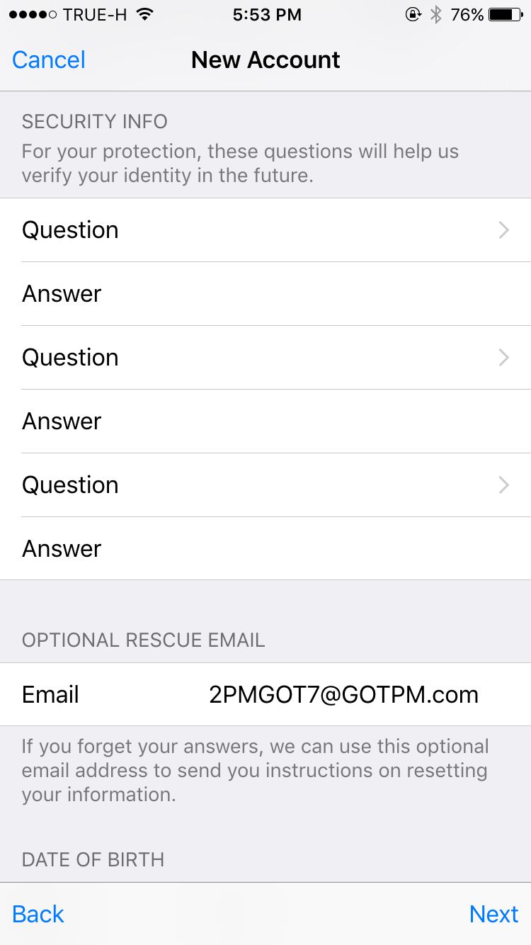 เลือกคำถาม-คำตอบทั้ง 3 คำถามเผื่อว่าจะมีการยืนยันตัวตนในอนาคตค่ะ และอีเมล์อีกอันเผื่อลืมพาสเวิร์ดค่ะ