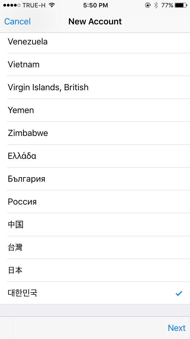 เลื่อนลงไปล่างสุดจะเป็นภาษาเกาหลีค่ะ ของเราเป็นไอดีเกาหลีอยู่แล้วเลยอยู่บนสุด เลือกแล้วกด Next