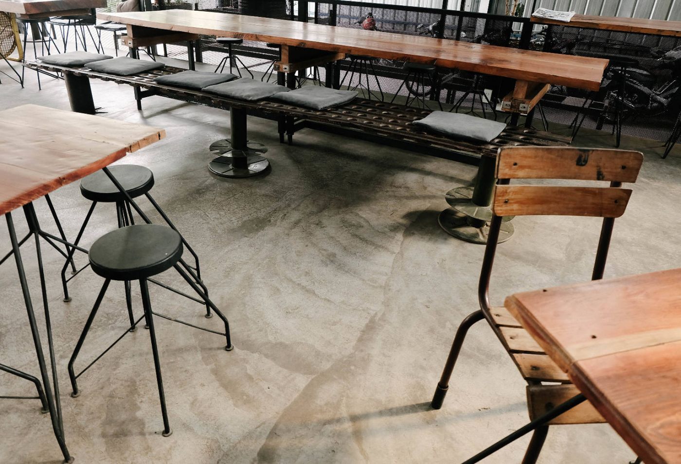 แต่น่าแปลกทั้งๆที่เราอยู่ในโรงงานกาแฟที่คนกำลังทำงานกันอยู่แท้ๆ เปิดเครื่องจักร มีคนเดินขนของไปมา แต่กลับไม่ได้รู้สึกว่ามันวุ่นวายรบกวนเราเลย ทั้งๆที่ไม่มีกำแพงหรืออะไรกั้นสักอย่าง เรากลับพอใจกับความเปลือยโล่งดิบๆ